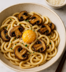 Creamy Mushroom Udon Carbonara