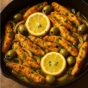 Moroccan Lemon Olive Chicken Skillet